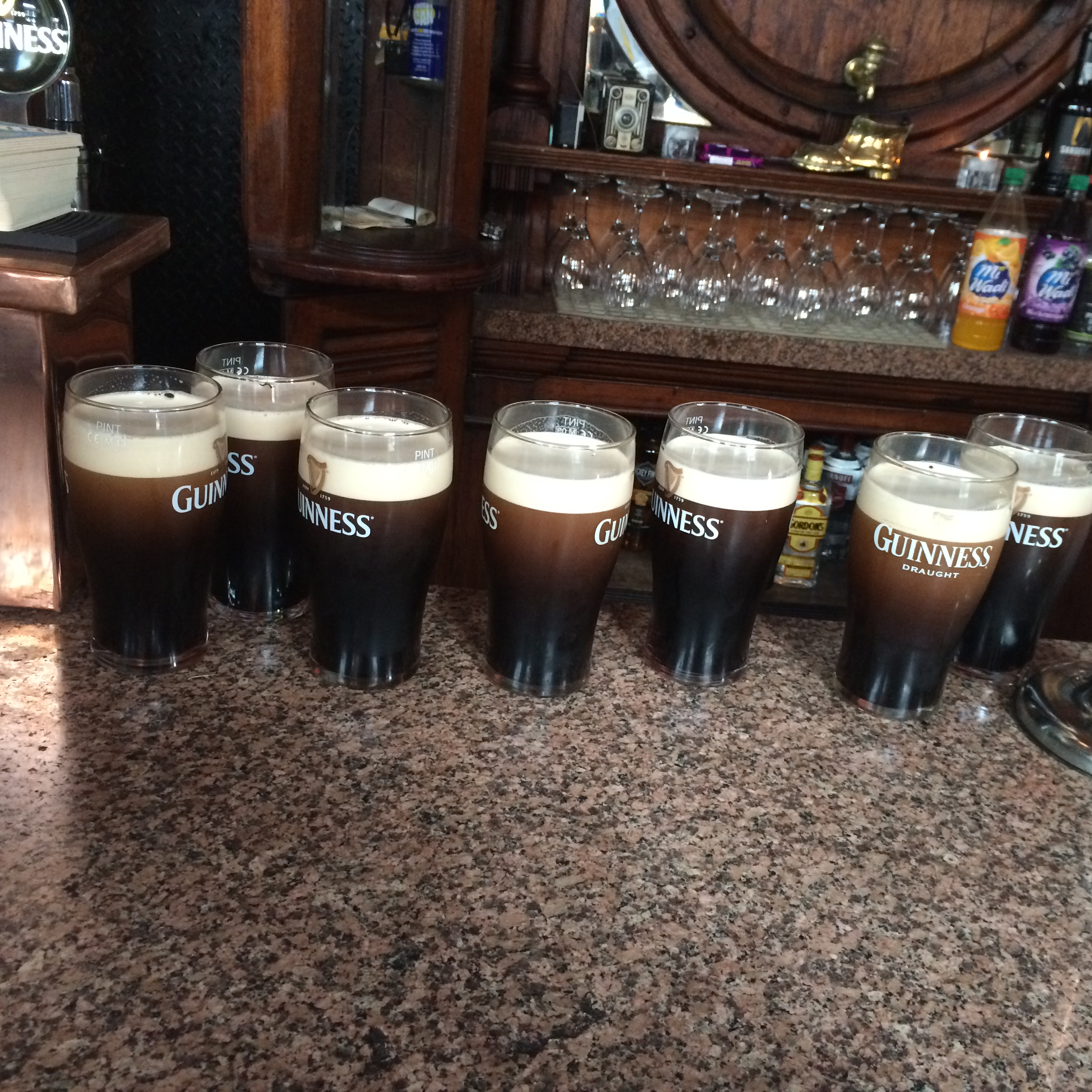 we rose early on Saturday morning raring to go! After breakfast we were on the open top bus tour thinking it was great we could jump on and off as we pleased and the bus driver told jokes, Brilliant!! We were in the Guinness factory (you may pick up a pattern of my early trips) and at the bar looking over the skyline at 11am. What could go wrong starting at this time.